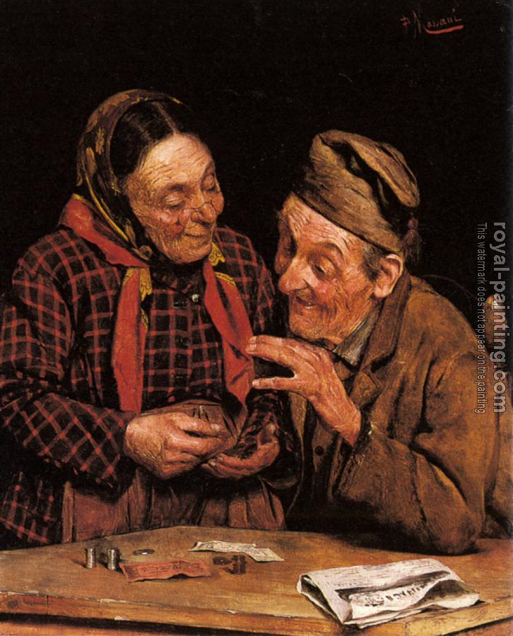 * Hand-painted Pompeo Massani Oil Painting Reproduction : The Money Counter