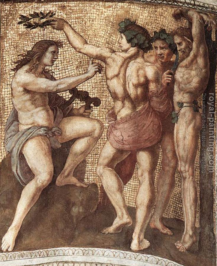 Raffaello Sanzio da Urbino, better known simply as Raphael 47309-Raphael-Stanza della Segnatura, Apollo and Marsyas.jpg