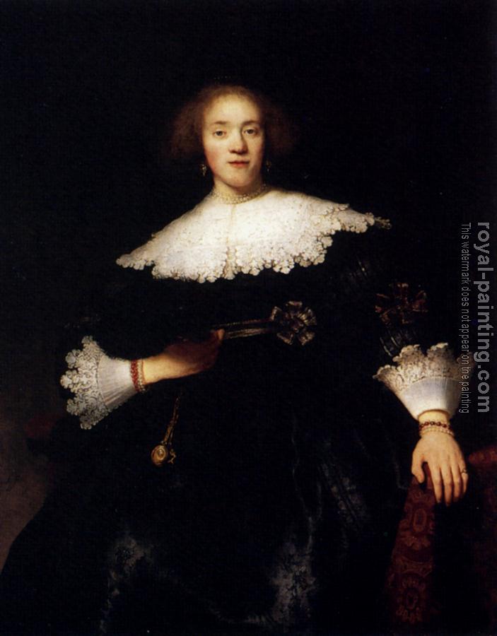 * Hand-painted Rembrandt Oil Painting Reproduction : Portrait Of A Young Woman With A Fan
