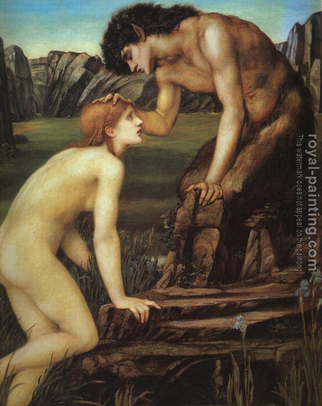 * Hand-painted Sir Edward Coley Burne-Jones Oil Painting Reproduction : Pan and Psyche