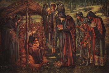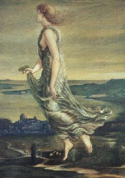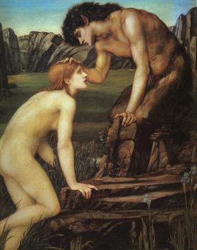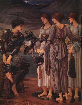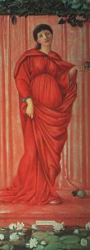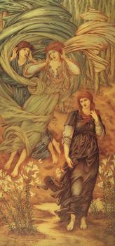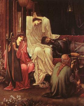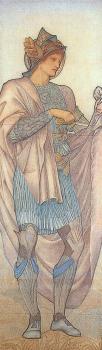 Sir Edward Coley Burne-Jones, 1st Baronet, A.R.A. (28 August 1833 - 17 June 1898) was a British artist and designer closely associated with the later phase of the Pre-Raphaelite movement, who worked closely with William Morris on a wide range of decorative arts as a founding partner in Morris, Marshall, Faulkner, and Company. Burne-Jones was closely involved in the rejuvenation of the tradition of stained glass art in Britain; his stained glass works include the windows of St. Philip's Cathedral, Birmingham, Holy Trinity Church, Sloane Square, Chelsea, St Martin's Church in Brampton, St Michael's Church, Brighton, Cumbria, the church designed by Philip Webb, All Saints, Jesus Lane, Cambridge, Christ Church, Oxford and in St. Anne's Church, Brown Edge, Staffordshire Moorlands. Burne-Jones's early paintings show the heavy inspiration of Dante Gabriel Rossetti, but by the 1860s Burne-Jones was discovering his own artistic "voice". In 1877, he was persuaded to show eight oil paintings at the Grosvenor Gallery (a new rival to the Royal Academy). These included The Beguiling of Merlin. The timing was right, and he was taken up as a herald and star of the new Aesthetic Movement.
