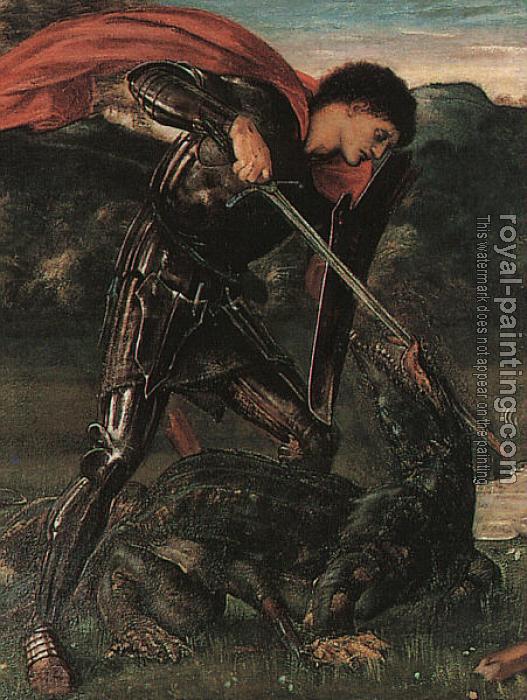 * Hand-painted Sir Edward Coley Burne-Jones Oil Painting Reproduction : St. George Kills the Dragon, detail