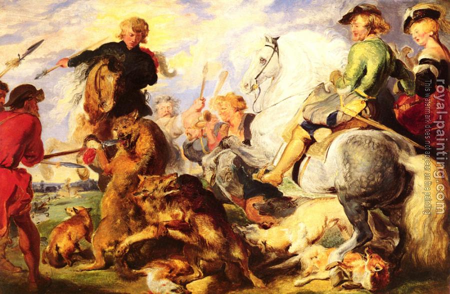 * Hand-painted Sir Edwin Henry Landseer Oil Painting Reproduction : Wolf and Fox Hunt