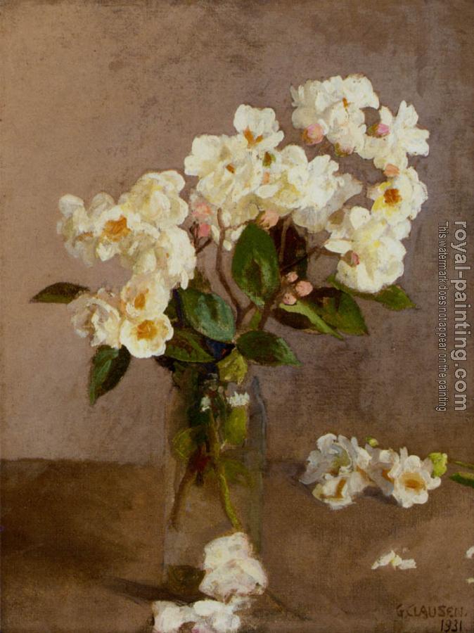 * Hand-painted Sir George Clausen Oil Painting Reproduction : Little White Roses