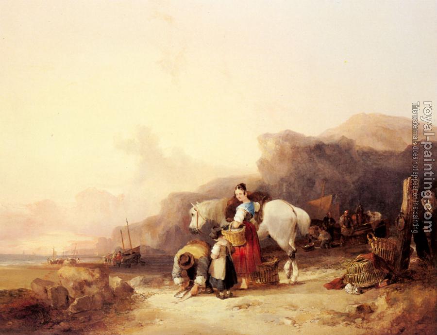* Hand-painted Snr William Shayer Oil Painting Reproduction : Beach Scene With Fisherfolk