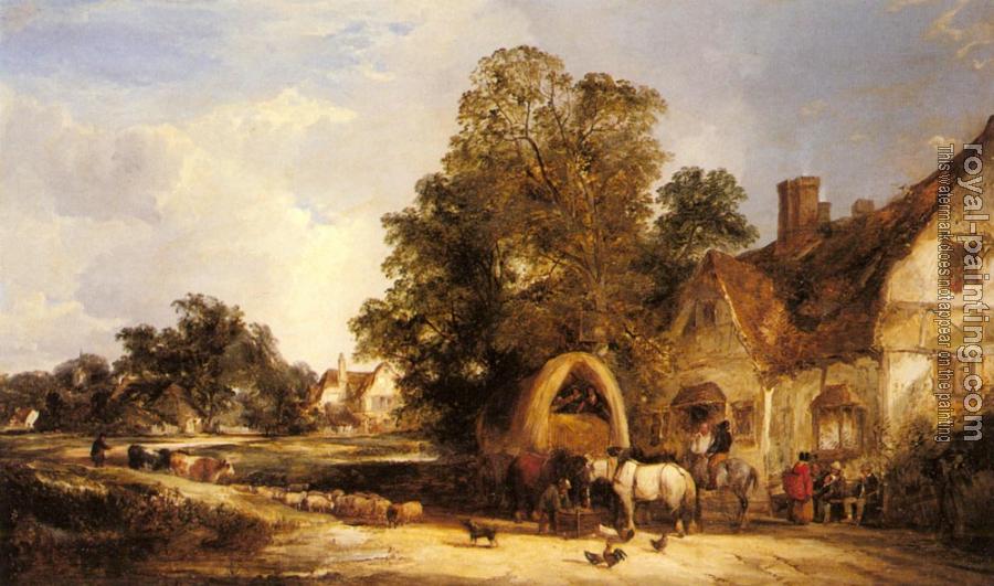 * Hand-painted Snr William Shayer Oil Painting Reproduction : The Half Way House Thatcham