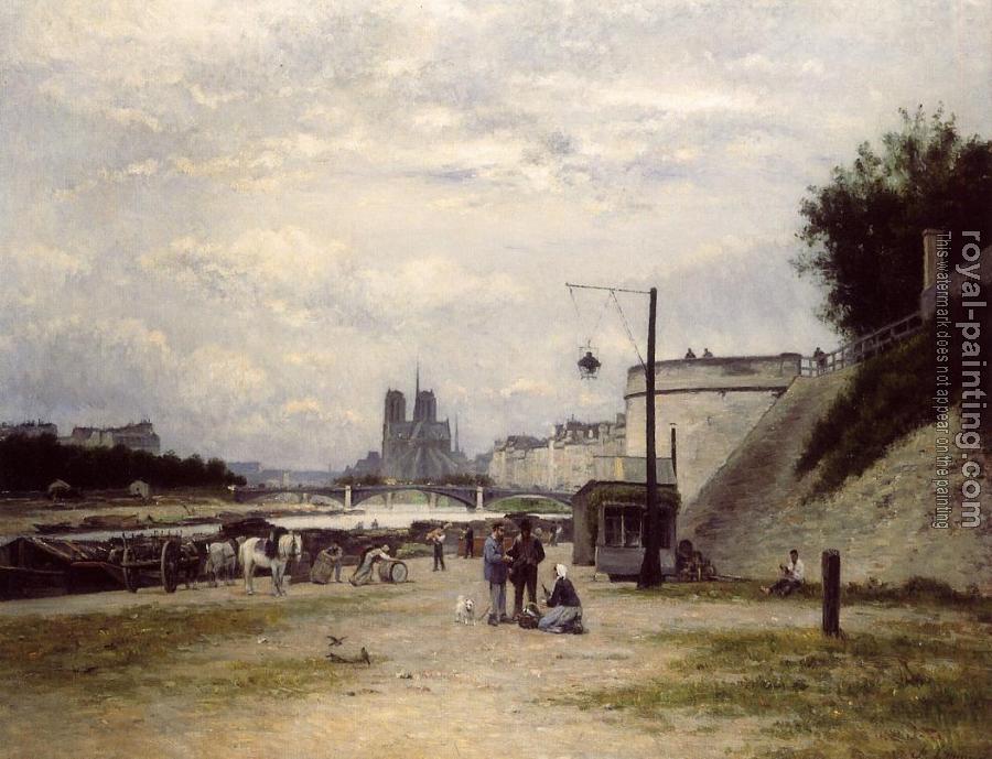 * Hand-painted Stanislas Lepine Oil Painting Reproduction : The Henri IV Quay, Paris