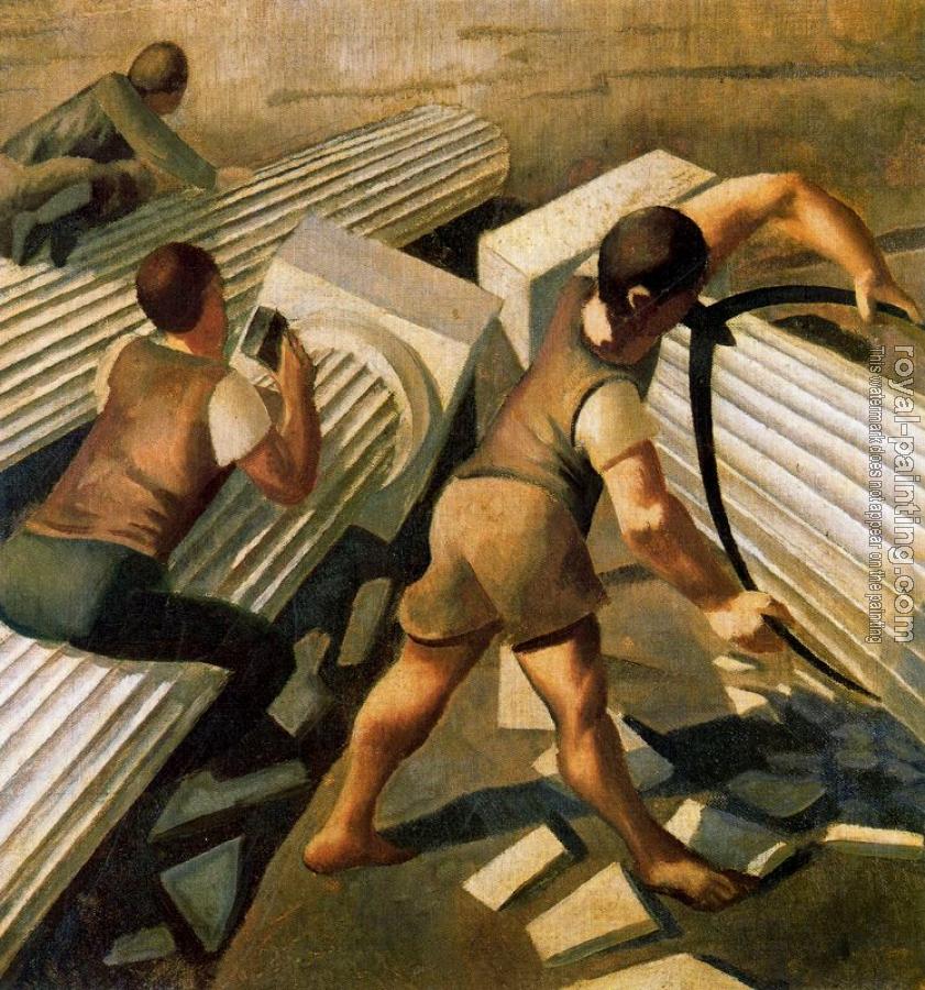 * Hand-painted Stanley Spencer Oil Painting Reproduction : Making Columns for the Tower Of Babel