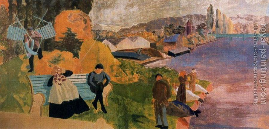 * Hand-painted Stanley Spencer Oil Painting Reproduction : People by the River