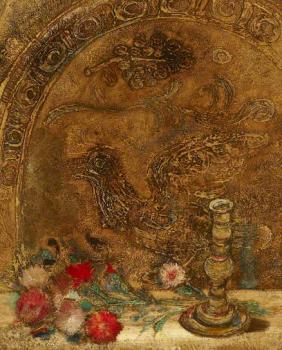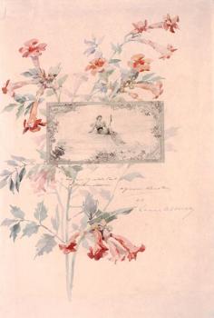 Composition florale autour d'une gravure