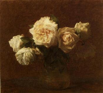 White Roses, Chrysanthemums, Peaches and Grapes on a Table