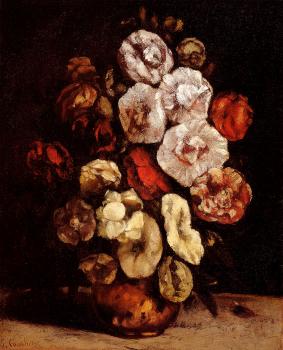 Vase of Hollyhocks