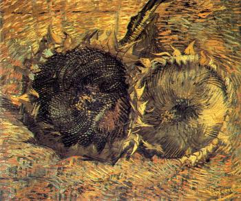 Two Cut Sunflowers,One Upside Down