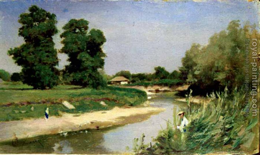 * Hand-painted Theodor Aman Oil Painting Reproduction : Landscape with river and trees