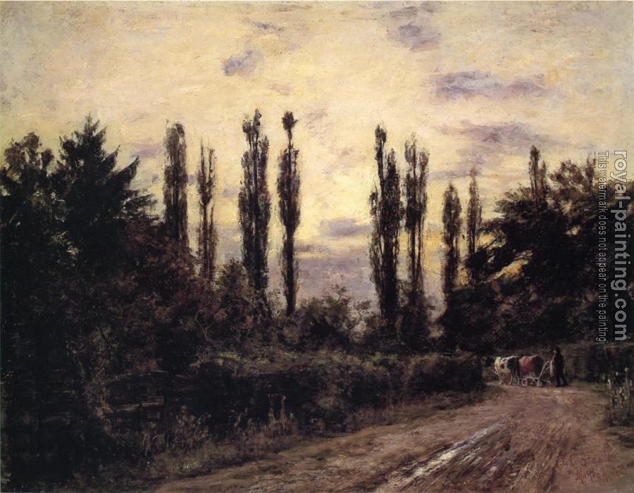 * Hand-painted Theodore Clement Steele Oil Painting Reproduction : Evening, Poplars and Roadway near Schleissheim
