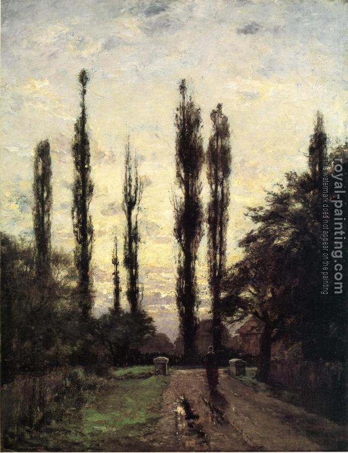 * Hand-painted Theodore Clement Steele Oil Painting Reproduction : Evening, Poplars