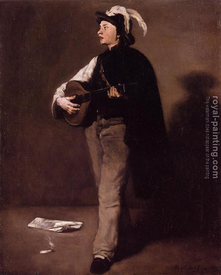 * Hand-painted Theodule-Augustin Ribot Oil Painting Reproduction : The Mandolin Player