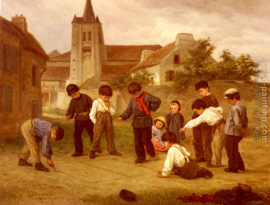 * Hand-painted Theophile Emmanuel Duverger Oil Painting Reproduction : Hopscotch