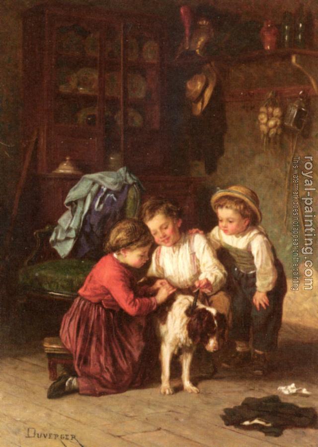 * Hand-painted Theophile Emmanuel Duverger Oil Painting Reproduction : The Patient Pet