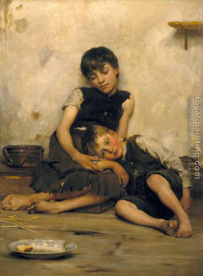 * Hand-painted Thomas Benjamin Kennington Oil Painting Reproduction : Orphans