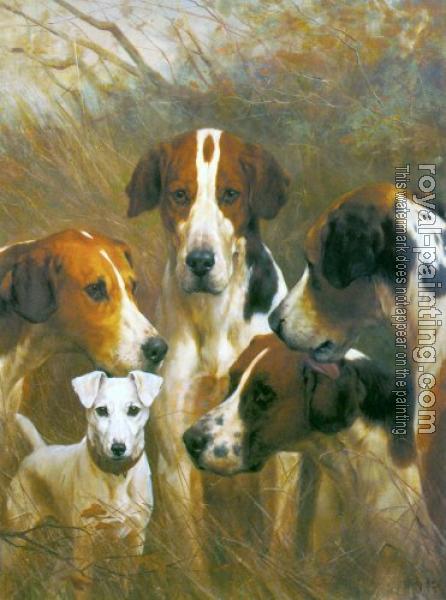 * Hand-painted Thomas Blinks Oil Painting Reproduction : Foxhounds and a Hunt Terrier
