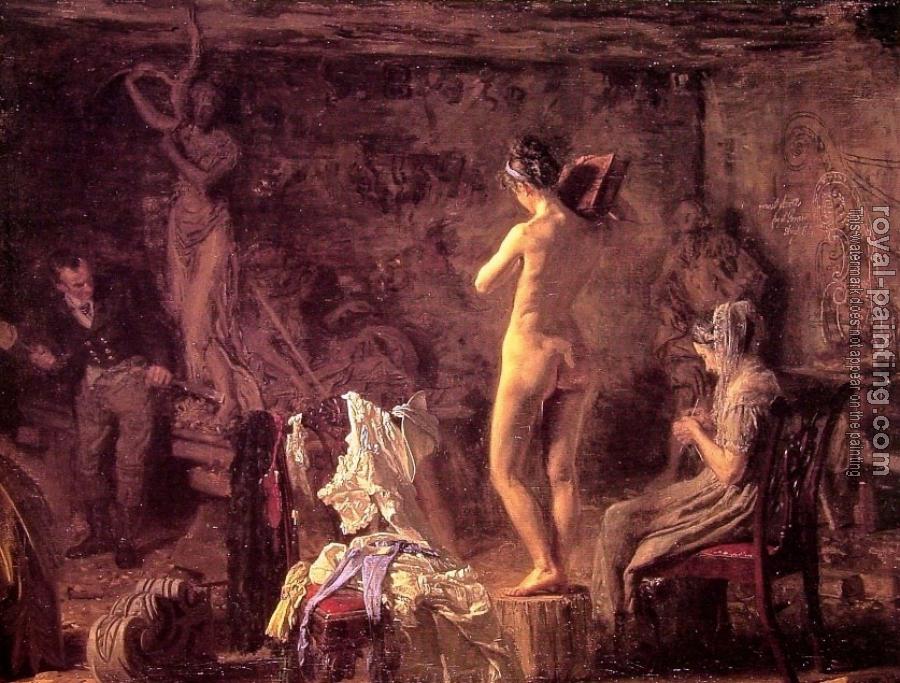 * Hand-painted Thomas Eakins Oil Painting Reproduction : William Rush Carving his Allegorical Figure of the Schuylkil