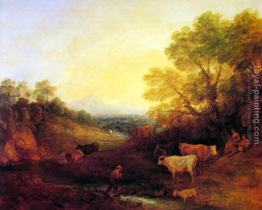 * Hand-painted Thomas Gainsborough Oil Painting Reproduction : Landscape with Cattle