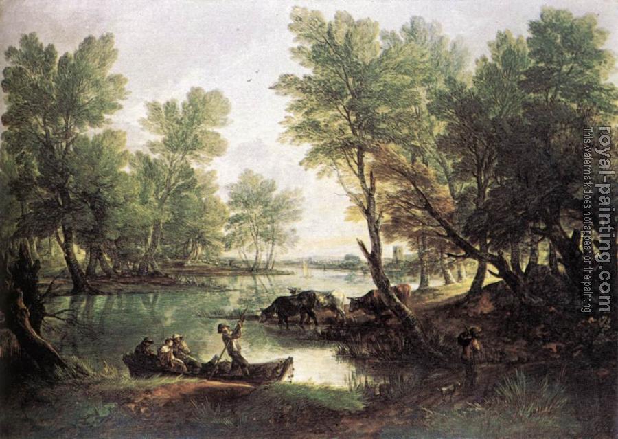 * Hand-painted Thomas Gainsborough Oil Painting Reproduction : River Landscape
