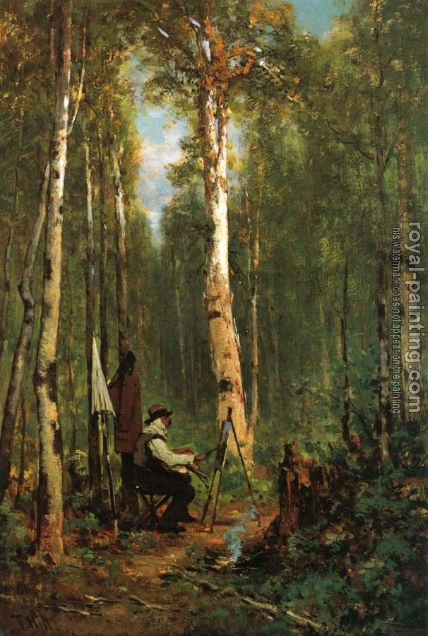 * Hand-painted Thomas Hill Oil Painting Reproduction : Artist at His Easel in the Woods