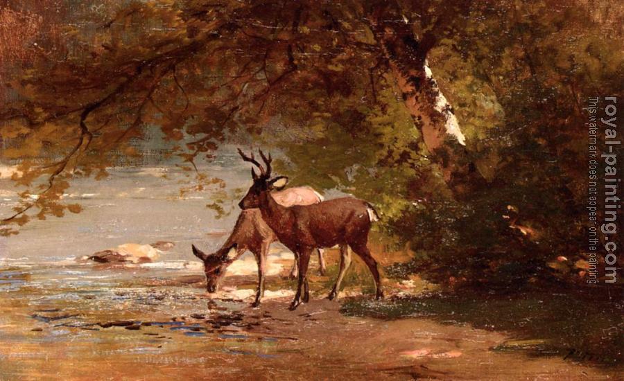 * Hand-painted Thomas Hill Oil Painting Reproduction : Deer in a Landscape