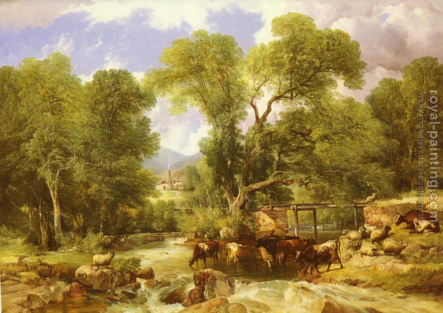 * Hand-painted Thomas Sidney Cooper Oil Painting Reproduction : A Wooded Ford