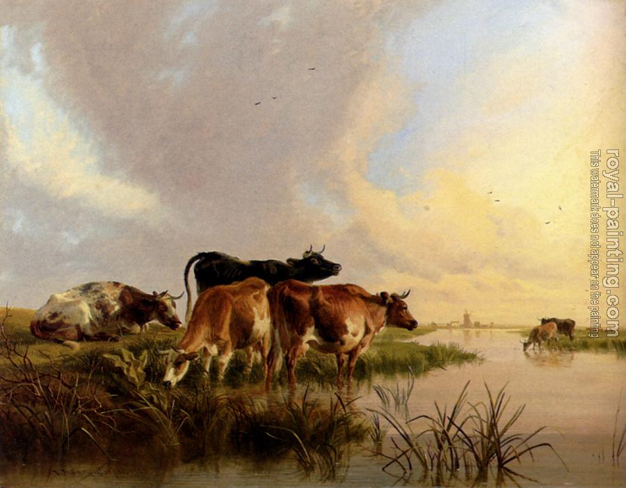canvas painting, 48725-Thomas Sidney Cooper-Cattle_Watering.jpg