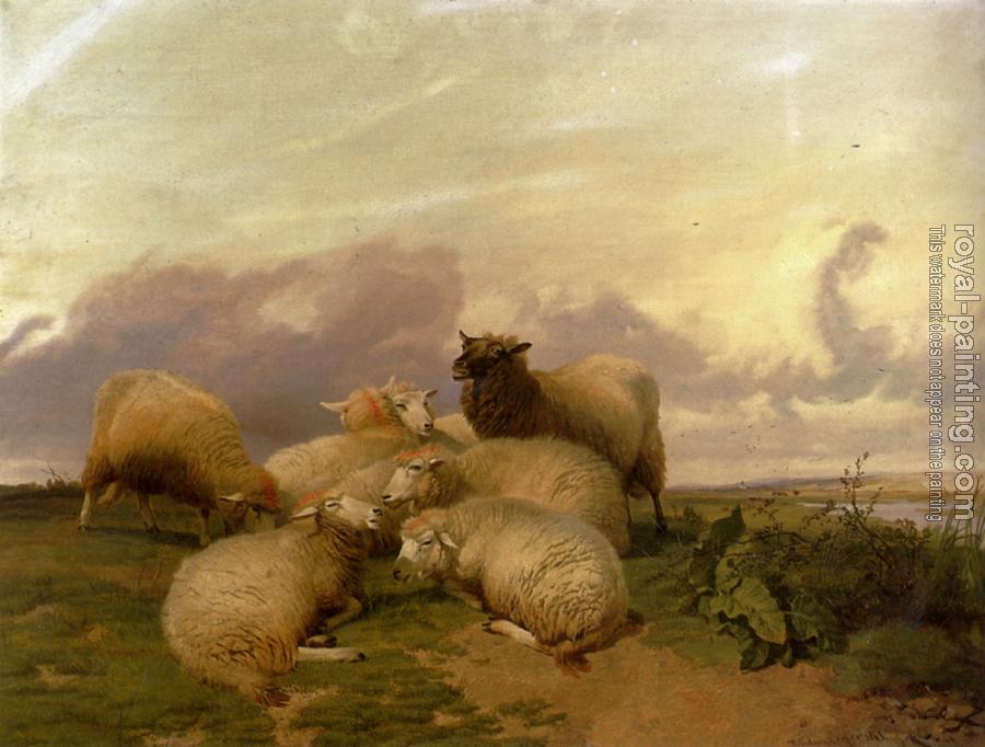 Sheep In Canterbury Water Meadows by Thomas Sidney Cooper