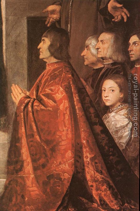 canvas painting, 48772-Titian-Madonna with Saints and Members of the Pesaro Family detail.jpg