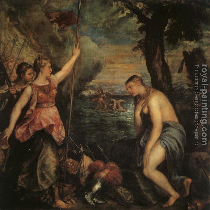 Museum quality reproduction of "Spain Succouring Religion". Wholesale oil painting reproductions of Titian. We also create oil paintings from your photos or print that you like. Turn your photos into beautiful portrait paintings. Most orders will be delivered in 1-3 weeks depending on the complexity of the painting.