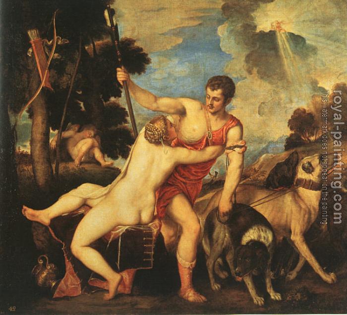 Museum quality reproduction of "Venus and Adonis". Wholesale oil painting reproductions of Titian. We also create oil paintings from your photos or print that you like. Turn your photos into beautiful portrait paintings. Most orders will be delivered in 1-3 weeks depending on the complexity of the painting.