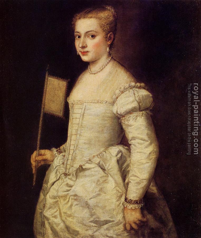 Museum quality reproduction of "Woman in white". Wholesale oil painting reproductions of Titian. We also create oil paintings from your photos or print that you like. Turn your photos into beautiful portrait paintings. Most orders will be delivered in 1-3 weeks depending on the complexity of the painting.