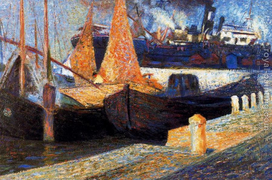 * Hand-painted Umberto Boccioni Oil Painting Reproduction : Boats in Sunlight