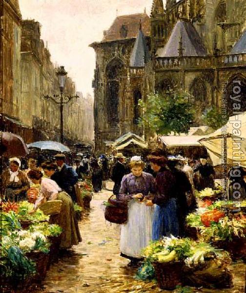 * Hand-painted Victor Gabriel Gilbert Oil Painting Reproduction : Market in Dieppe