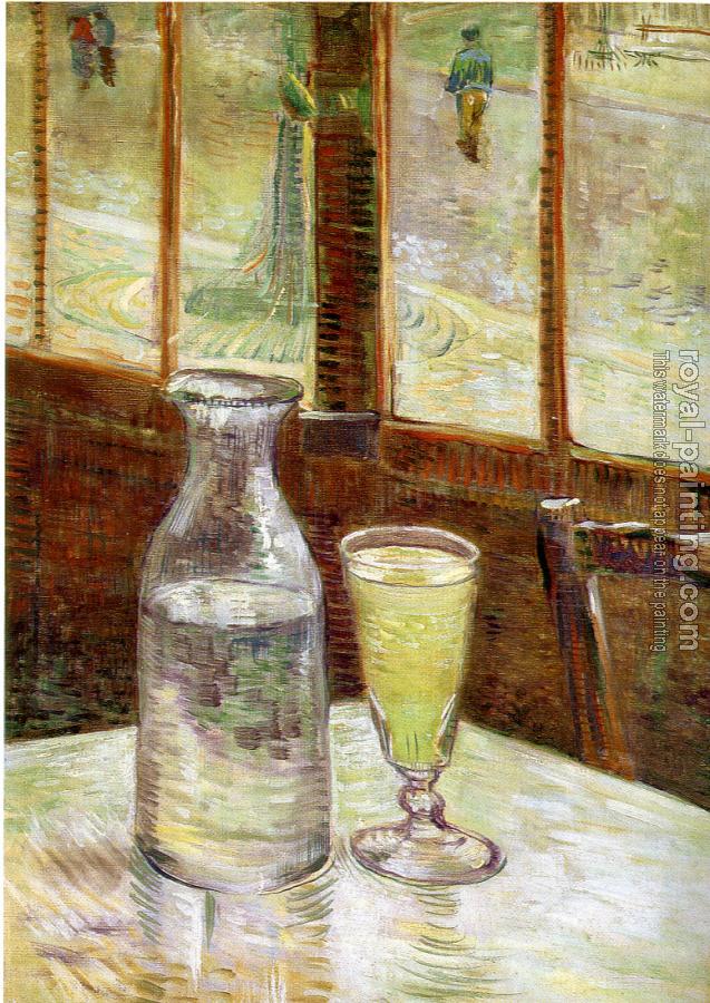 * Hand-painted Vincent Van Gogh Oil Painting Reproduction : A Table in front of a Window with a Glass of Absinthe and a Carafe