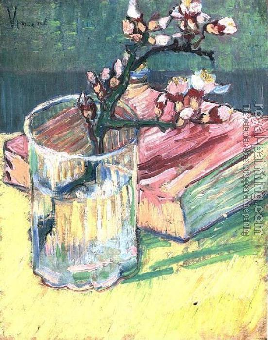 Blossoming Almond Branch in a Glass with a Book by Vincent Van Gogh