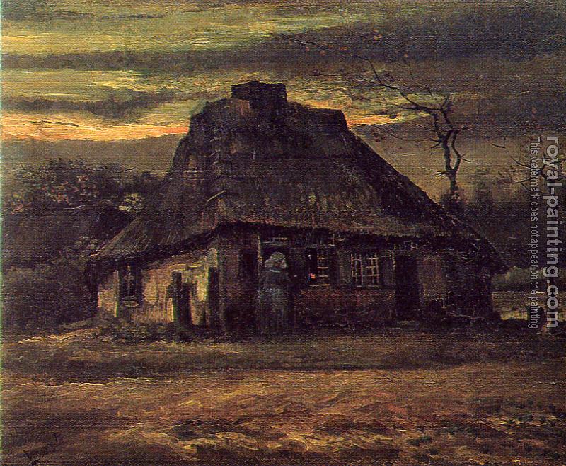 * Hand-painted Vincent Van Gogh Oil Painting Reproduction : Cottage at Nightfall