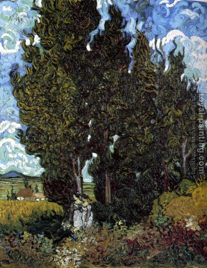 * Hand-painted Vincent Van Gogh Oil Painting Reproduction : Cypresses II