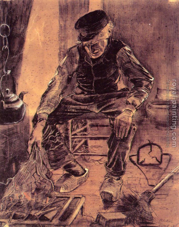 * Hand-painted Vincent Van Gogh Oil Painting Reproduction : Farmer sitting at the fireplace