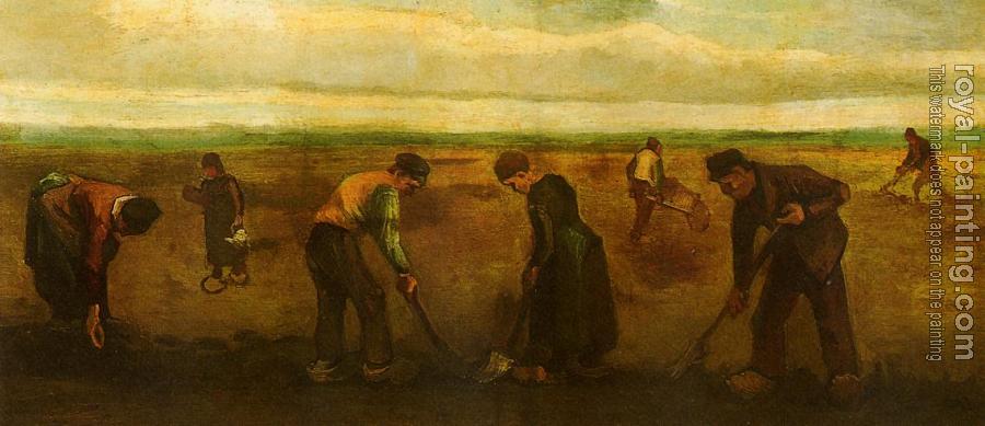 * Hand-painted Vincent Van Gogh Oil Painting Reproduction : Farmers Planting Potatoes