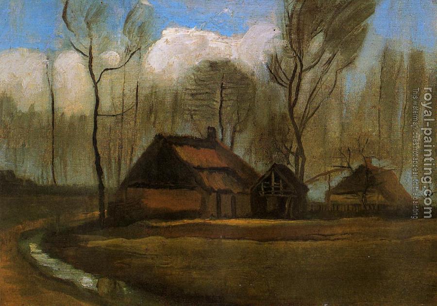 * Hand-painted Vincent Van Gogh Oil Painting Reproduction : Farmhouses among Trees