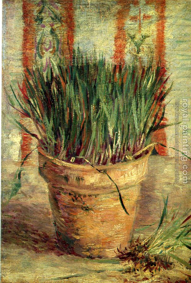 * Hand-painted Vincent Van Gogh Oil Painting Reproduction : Flowerpot with Chives