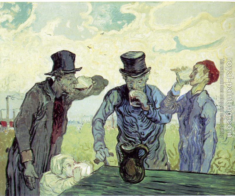 * Hand-painted Vincent Van Gogh Oil Painting Reproduction : Men Drinking(afterDaumier)