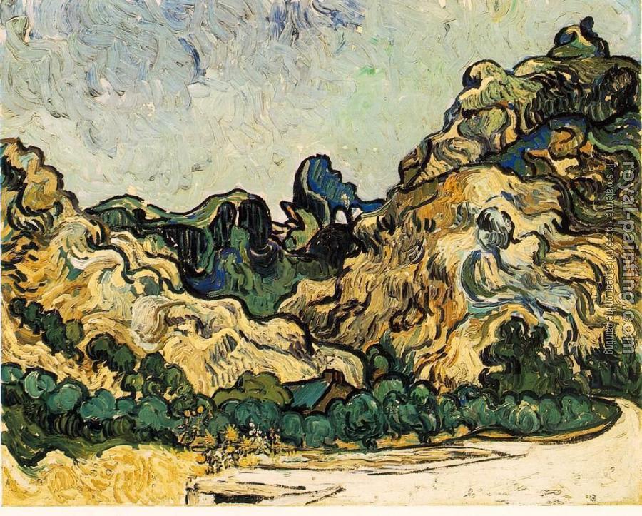 * Hand-painted Vincent Van Gogh Oil Painting Reproduction : Mountains at Saint-Remy with Dark Cottage