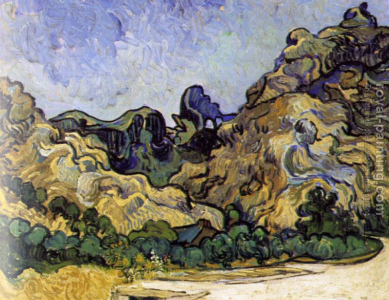 * Hand-painted Vincent Van Gogh Oil Painting Reproduction : Mountains with Dark Hut
